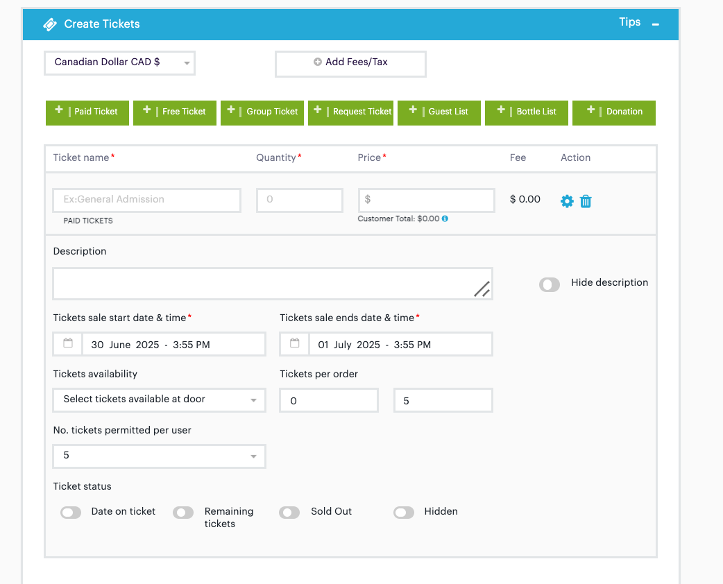 📌 Pro Tip: Keep your ticket names simple and consistent — it helps avoid confusion during checkout.